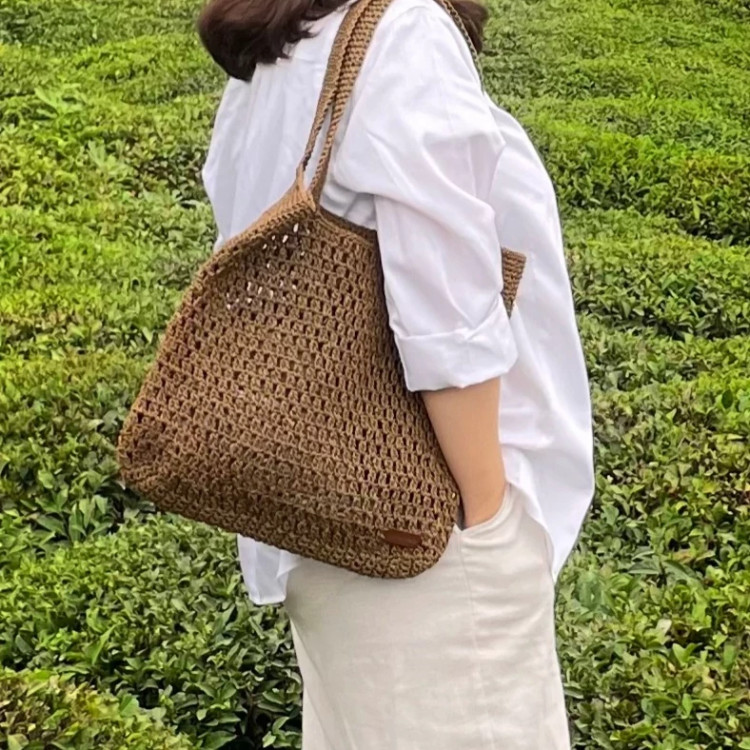 این کیف بافتنی با نخ مرغوب ترک و با دستبافت ظریف و تمیز آماده شده است. طراحی آن بهگونهایست که هم برای خرید هم برای ساحل و تفریح مناسب است و هم استایل خاص و شیکی به لباس بهاری و تابستانی شما میدهد.در دو مدل ساده و دسته قایقی که مناسب استفاده روزمره، پیادهروی یا حتی هدیه دادن است. مناسب برای دختران و خانم ها ویژگیها: • نخ: رافیا ترک • رنگ: قهوه ای (امکان سفارش در رنگهای دیگر) • مدت زمان بافت: حداکثر 10 روز • مناسب فصل بهار و تابستان